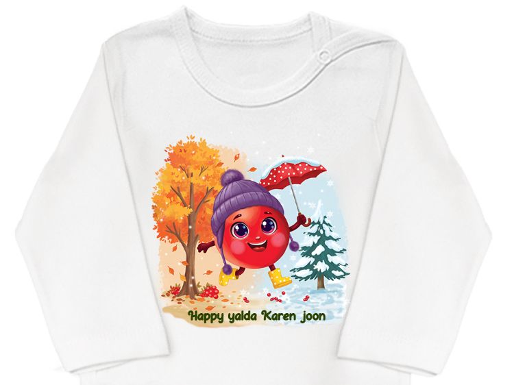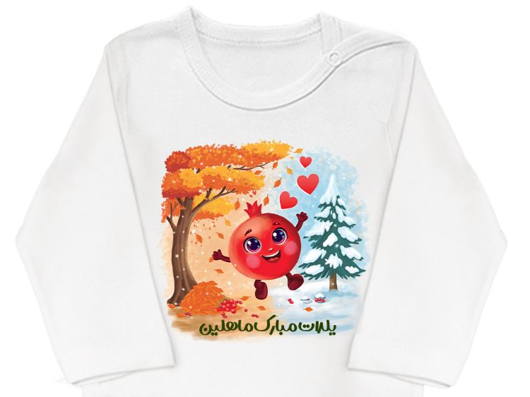 بادی آستین بلند سفید طرح انار یلدا مبارک