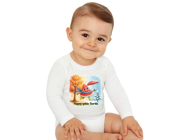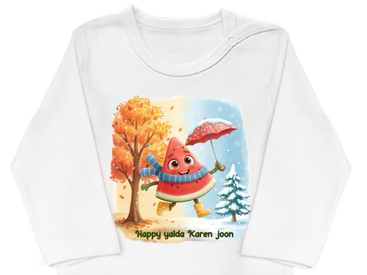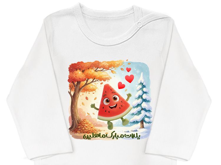 بادی آستین بلند سفید طرح هندونه یلدا مبارک