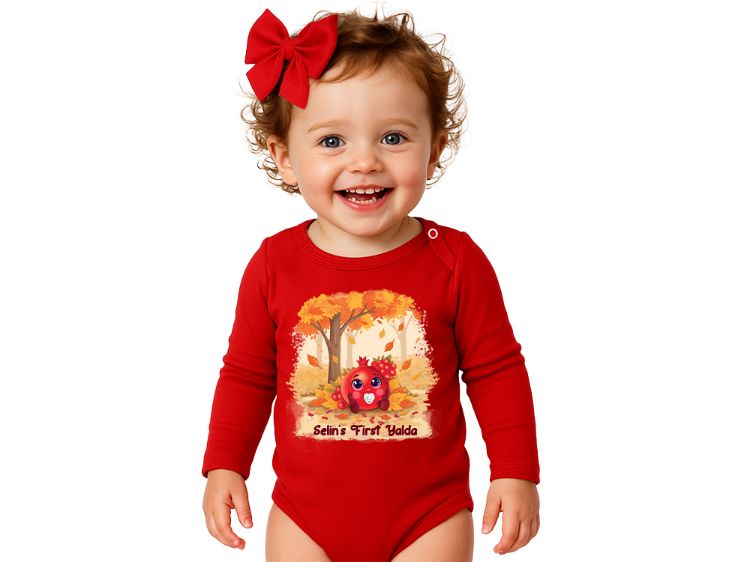 بادی آستین بلند قرمز طرح انار اولین یلدا